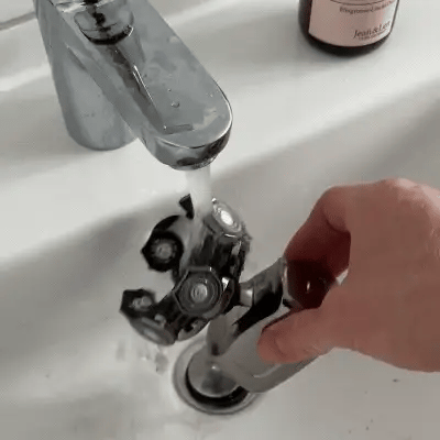 Die Reinigung ist total unkompliziert: Klingenköpfe öffnen (aufklappen), ausspülen,